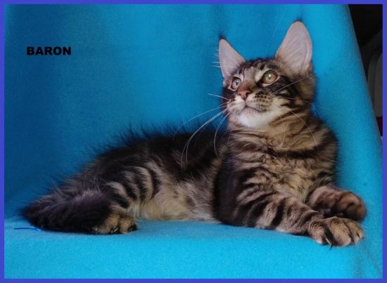 Hodowla Rysi Pazur ma do zaoferowania dwa kocurki i jedną koteczkę.Kocięta mają 4 miesiące i ważą po 3,5 kg.Baron jestczarnym klasycznie pręgowanym kocurkiem. Benji to niebieski klasycznie pręgowany kocurek. Bajka jest niebieską szylkretką. Kocięta mają cudowne miziaste charaktery.Posiadają ksiązeczkę zdrowia i 5-cio pokoleniowy rodowód. Są nauczone czystości,2xodrobaczone,2x zaszczepione ,zaczipowane i po kastracji. Do nowego domku kazdy dostanie wyprawkę. Jesteśmy zarejestrowani w CCAMBER pod patronatem FPL.